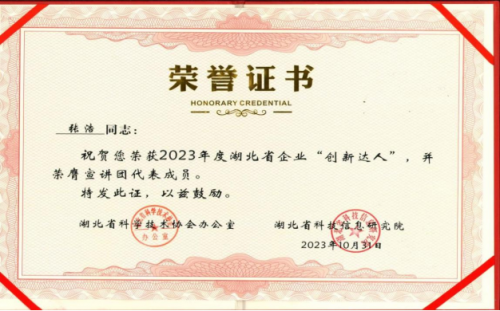張浩同志榮獲2023年湖北省企業(yè)“創(chuàng)新達(dá)人”稱(chēng)號(hào)